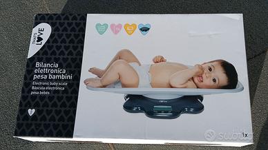 Bilancia per neonati in perfette condizioni, schermo LCD, graduazione di 10 grammi, indicatore di batteria scarica e capacità di max 50 Kg. Funziona con 2 batterie AA. Completa di vassoio e supporto removibile, scatola originare e libretto di istruzioni.