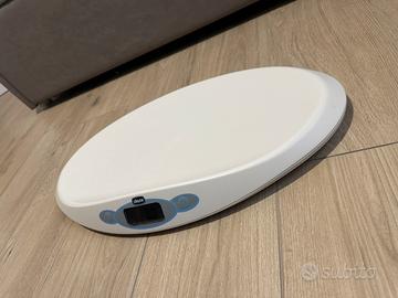 Bilancia elettronica digitale con display in LCD, da 30g a 20 kg (massimo arrotondamento di 10g), funzione tara, funzione stabilizzatore (per riuscire a pesare anche se il bambino si muove), memorizzazione ultima pesata.