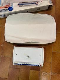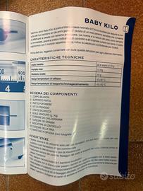 Vendo bilancia per neonati Chicco per cessato utilizzo. Funziona senza batterie, con un sistema di contrappesi. Si puó tarare in modo semplice dalla parte posteriore della bilancia, e si deve poi arrivare a mettere “in bolla” la bilancia una volta appoggiato il neonato su di essa con precisione al grammo tramite il sistema di contrappeso per sapere in modo preciso il peso del bebé. Il range di utilizzo va dai 50 grammi ai 13 kg ed ha una precisione che va di 10 grammi.