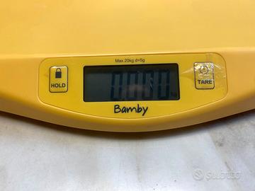 Bilancia elettronica per neonati equipaggiata con 4 sensori di alta qualità ed accuratezza che permettono la registrazione del peso anche con bimbo in movimento. BAMBY è dotata di selettore manuale dell’unità di peso (Kg, oz, lb) e della funzione di peso istantaneo e tara. Con funzione automatica di azzeramento e spegnimento e dotata di indicatori di batteria scarica e sovraccarico. Piano di appoggio in ABS giallo.