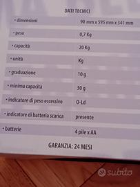 bilancia elettronica digitale, peso fino a 20 kg dotata di sottofondo musicale