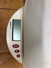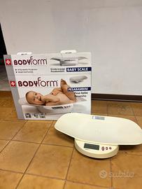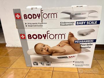Bilancia pesaneonati elettronica Bodyform (modello BM4500). Portata massima: 20 kg. Precisione: Divisione di 10 g. Funzioni: Dispone di funzione "blocca-peso" per misurazioni accurate anche quando il bambino si muove e funzione tara per azzerare il peso di un panno o asciugamano. Display: Dotata di un grande display LCD per una facile lettura.