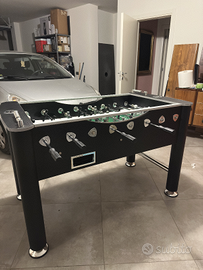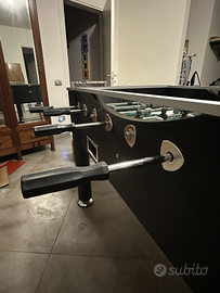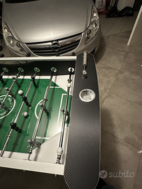 Calcio Balilla per uso professionale con piano di gioco in vetro temperato.
