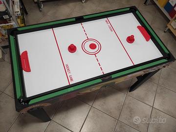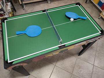 Tavolo multi gioco SUN&SPORT in vero legno con 5 possibilità di gioco: biliardino, biliardo, ping-pong, bowling e air hockey. Basta sollevare il piano del biliardino per inserire gli altri giochi. Accessori già inclusi: palline, stecche, racchette, birilli e gessetti. Ideale per bambini dai 6/8 anni per gioco in famiglia o con amichetti. Dimensioni: L: 123 cm P: 62 cm H: 80 cm. Condizioni pari al nuovo perfettamente conservato. Consigliato l’acquisto per distogliere l’attenzione dai soliti schermi. Solo ritiro.