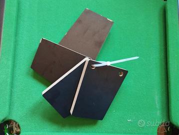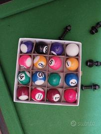 Comprende 15 palline, 2 stecche,triangolino,gesso,e tutte e 4 le gambe per sostenerlo.