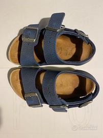 Birkenstock bambino in pelle blu, suola gomma verde n. 26 praticamente perfetta, complete di scatola originale, come nuove!