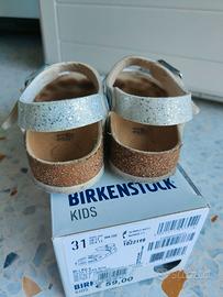 Sandali Birkenstock bimba modello Rio numero 31 fantasia chiara brillantino. Cinturini, plantare e suole in buonissime condizioni.