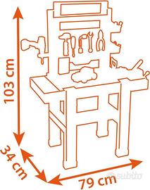 Dotato di tanti piani per riporre gli utensili, tanto spazio per permettere ai più piccoli di esprimere la loro fantasia, è incluso un trapano meccanico con impugnatura soft.