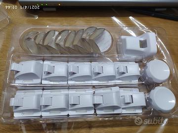Blocca Cassetti per Bambini (10 Serrature + 2 Chiavi + 8 Paraspigoli), marca BABYGO, NUOVO, vendo perché acquistato due volte per errore. Testati per respingere una forza di trazione di 29,9 kg, quando gli armadi e i cassetti sono chiusi. Le serrature utilizzano un nastro adesivo marca 3M extra resistente e quindi non sono necessarie viti e nessun danno permanente ai mobili (viti opzionali comunque fornite). Inclusi 8 paraspigoli.