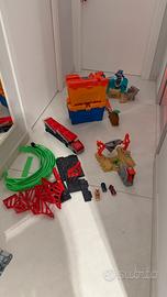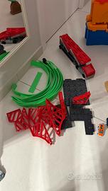 Vendo blocco di hot wheels comprensivo di pista squalo (completa) , camion porta auto, pista pirata ( manca cappello) pista componibile con giro della morte , 2 track builder e 3 macchinine.