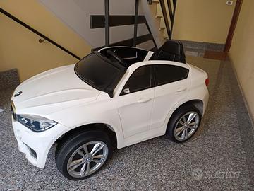 BMW X6M elettrica guidabile anche da un adulto con radiocomando a distanza, luci, musica e suoni 2 velocità + retro. Usata poco e sempre in casa pari al nuovo. Misure lunghezza 110 larghezza 63 altezza 55. Da ritirare a Roma in zona Boccea Selva Candida. prezzo trattabile