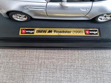 BMW Z3 M Roadster 1:24 Burago Bburago Vintage Made In Italy 1996 su piedistallo colore grigio.