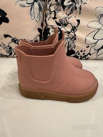 Stivaletti da pioggia Boatilus tg. 20, colore old pink nuovo effetto suede. Usati due volte quando la bimba ancora non camminava poi la taglia è cambiata si vede dalla suola non ci sono segni di consumo. Impermeabili in gomma ecologica, leggeri e facili da indossare, con suola antiscivolo. Ideali per nido/asilo e giornate di pioggia. Acquistati in noto negozio per bambini della zona.