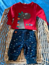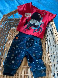 Maglia polpo + pantalone 0M + maglia Dinosauro 1M