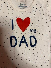 • Dettagli: Stampa frontale "I ❤️ My Dad" (Io amo il mio papà). Chiusura con bottoni automatici (snap) sul fondo.