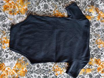 Vendo body nero a maniche corte per neonato, taglia 6-12 mesi. Stampa bianca con scritta "Born to Rock" e chitarra con teschio, perfetto per piccoli rocker! Materiale cotone.