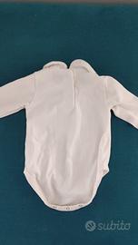 Body Chicco a manica lunga con colletto e ricamo argento a rilievo. 3 mesi. Mai indossato, solo lavato.