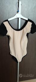 Body nero danza a manica corta, misura 134 cm (equivalente alla taglia 2' di Danza) torace: 72/77 cm, vita: 58/61 cm, fianchi: 75/79 cm. Materiale 96% cotone e 4% elastan. Ottimo tessuto (non cinese). Condizioni pari al nuovo, in quanto usato solo una volta per un saggio.