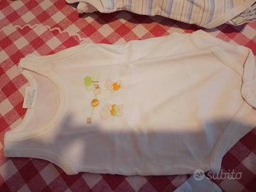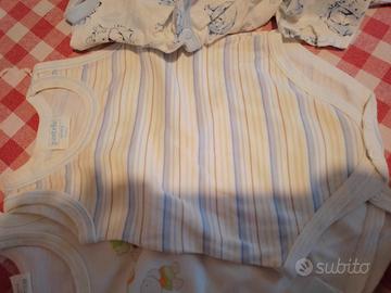 nr. 3 body a canotta zero mesi 100% cotone marca Il Pastello. nr. 2 body a maniche corte 3 mesi marca Benetton 100% cotone. 1 pagliaccetto marca Brums con manica lunga senza piedini 100% cotone + in regalo completo Benetton zero mesi maglietta maniche corte più pantaloncini corti.