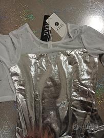 Set body e short argento bambina. Nuovo con etichetta, mai utilizzato. taglia 7/8 anni (122/128 cm)
