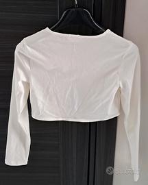 Coprispalle bambina 8/9 bianco in cotone, bottoncino a cuore colore argento, asola in elastico, indossato una sola volta, come nuovo