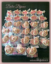 Bomboniere ciucci con nome e orsetto personalizzabili con nome e ideali per nascita, battesimo e baby shower.