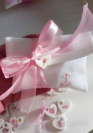 bomboniere per comunione o cresima comprensive di 5 confetti tag e cuoricini profuma biancheria per info e disponibilità contattatemi