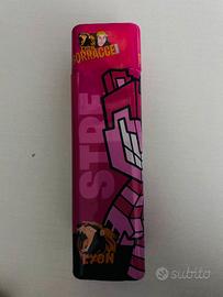 Si tratta di una borraccia ufficiale di Lyon Gamer (Lyon WGF), con il design del personaggio "Stregatto Rosa" (o simile, data la colorazione rosa/fucsia). È un accessorio scolastico in plastica pensato per i fan del noto YouTuber italiano.