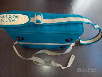 Alzasedia Jane' richiudibile in pratica borsa. Perfetta da portare quando si va' al ristorante o si pranza/cena fuori casa. Dotata di pratica tasca porta oggetti, resistente al peso del bambino fino a 15 kg. Munito di cinturino di sicurezza e di tracolla per un facile e comodo trasporto. Misure chiuso: cm 34 x 24 x h 10 Ritiro di persona a Torino in zona Crocetta o Santa Rita.