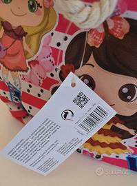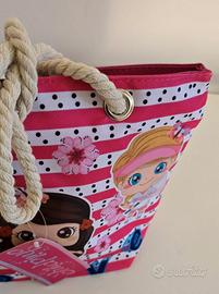 Graziosa borsetta per bambina Child Pink con fantasia a righe e pois, decorata con simpatiche illustrazioni. Nuova con etichetta.