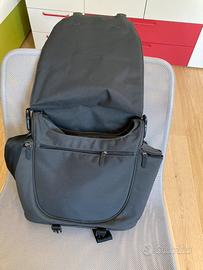 Borsa passeggino Bugaboo, nera. Scomparto principale, piu tasca frontale e posteriore. Due tasche laterali termiche. Materassino cambio rimovibile. Tracolla per il trasporto a spalla o da mettere sul maniglione del passeggino.