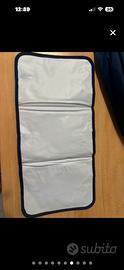 Borsa porta cambio per neonati con un design a quadri. - Colore blu scuro e bianco. - Tessuto a quadri. - Include un fasciatoio pieghevole.