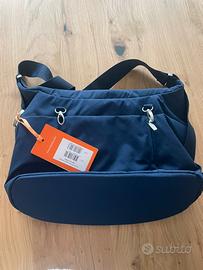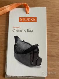 Borsa cambio stokke navy, nuova con etichetta. Puo essere utilizzata come borsa a tracolla o agganciata al passeggino. Dotata di tasche interne ed esterne. Include borsetta portaciuccio e materassino per il cambio.