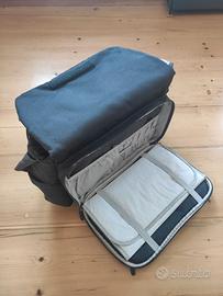Borsa capiente, portabile a tracolla o agganciata al passeggino/carrozzina. Completa di tasche termiche per biberon e tasca con fasciatoio estraibile.