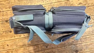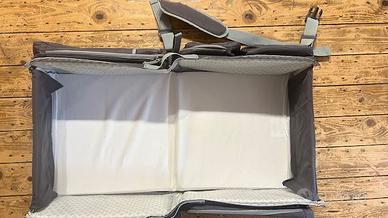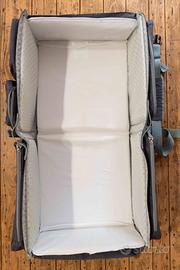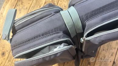 Pratica borsa 2 in 1, ideale per i viaggi siccome porta con se la praticità di una borsa e la comodità di un fasciatoio portatile. Con tante tasche laterali, inclusa tasca frigo. Incluso materasino. Prezzo del prodotto nuovo: 85.90 EUR.