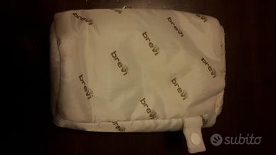 Borsa fasciatoio BREVI capiente, in tessuto imbottito misto cotone, lavabile a 30°C è ben organizzata al suo interno con tre scomparti e una grossa tasca; all'esterno dispone di una tasca frontale con cerniera, due piccole e pratiche tasche anteriori, due portabiberon laterali e una grande tasca posteriore con cerniera. È dotata di tracolla regolabile e agganci per fissarla al passeggino o alla carrozzina. Contiene in dotazione il fasciatoio da viaggio in spugna di cotone al 100% e fondo impermeabile, il porta biberon termico che ne mantiene la temperatura e una pratica busta porta pannolini in cui riporre i pannolini bagnati. Confezione in crystal trasparente. Borsa colore verde militare. Misura 40 x 32 x 13 Usato solo porta biberon e fasciatoio da viaggio, tutto lavato e in ottimo stato. Il resto è nuovo. Spese spedizioni a carico acquirente.