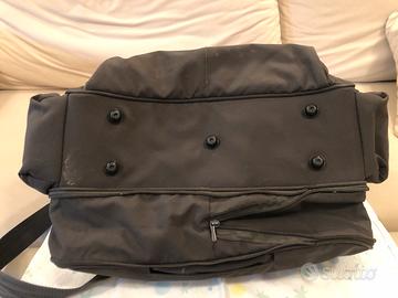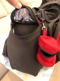 Si può portare a mano o con tracolla regolabile (staccabile con moschettoni), anche ovviamente agganciata al passeggino.