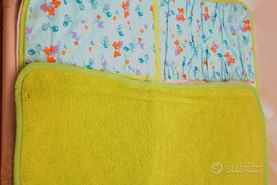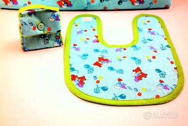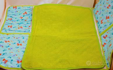 Borsa fasciatoio con scomparti porta oggetti ,asciugamano staccabile, un bavaglino e un porta ciuccio. La borsa misura cm 45 x30 , aperta 90 x 60 , bavaglino 20 x 21 e il porta ciuccio 8x5x1. Tutto lavabile in lavatrice. pezzo unico creato da me ,nuovo