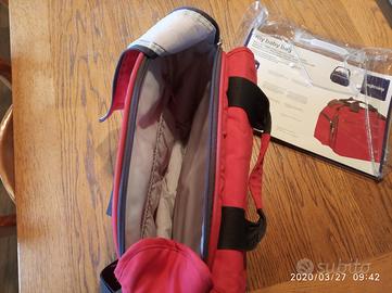 Vendo borsa my baby bag dell'inglesina colore rosso tenuta benissimo e in ottime condizioni completa del fasciatoio da viaggio.molto capiente con varie tasche frontali+laterali porta biberon.