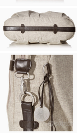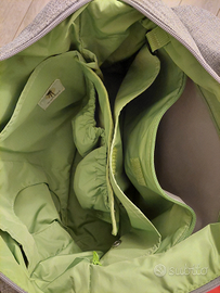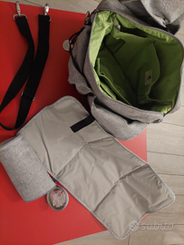Borsa con ampio comparto con varie tasche e portaoggetti, scomparto per salviette, scomparto termico con zip esterno, compreso tappetino fasciatoio e portabiberon termico.