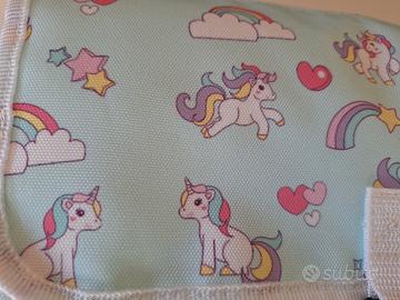 Borsa fasciatoio Unicorn All-In-One, completa di tappetino portatile per il cambio del bebè. Usata pochissimo, in ottime condizioni, come nuova. Design pratico e compatto, con più scomparti per organizzare al meglio pannolini, salviette e accessori. Il materassino imbottito incluso permette di cambiare il bambino ovunque in modo igienico e confortevole. Ideale per viaggi, passeggiate e spostamenti quotidiani. cambio pannolini