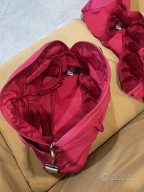 Borsa fasciatoio Inglesina My Baby Bag di colore rosso. Tre piccolissimi rammendi sul fondo, dove c'è l'imbottitura ed è cartonato, quindi non va ad intaccare la borsa. Da lavare,