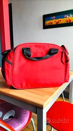 Borsa capiente con molte tasche interne ed esterne, completa di traversina pieghevole e impermeabile e confezione originale.