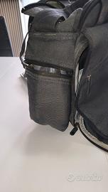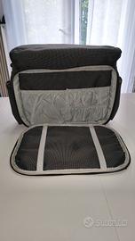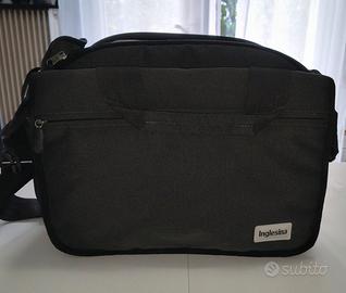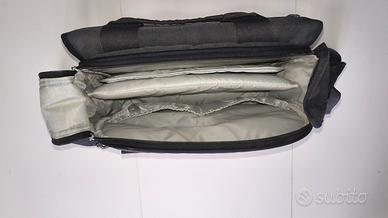Dotata di una comoda tracolla regolabile in lunghezza, dotata di ganci per il fissaggio al manico della carrozzina o del passeggino e di una doppia maniglia corta per agevolarne il trasporto.