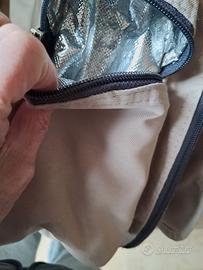 Borsa Inglesina da passeggio con tracolla, molto capiente per neonati, con due taschine laterali porta biberon una delle quali termica. Ottimo stato.