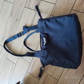 Dotata due manici e due cinghiette per agganciarla comodamente ai passeggini e può essere portata comodamente a mano.