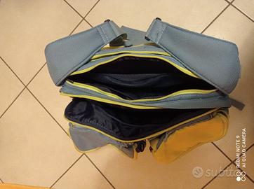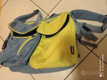 Vendo borsa multifunzione da passeggio o viaggio Chicco colore azzurro, giallo dotata di tantissimi scomparti da mettere tutto il necessario del bambino, dal cambio vestitino al cambio pannolino o altro, ci sono anche 2 tasche davanti. Dotata anche di tracolla regolabile in lunghezza.