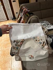 Borsa per neonati/bambini per cambi, porta pannolini ecc Realizzata a mano 100% fatto a mano Si può realizzare con qualsiasi fantasia e colore Posso realizzare anche fasciatoi da viaggio, porta biberon, porta ciuccio, sacchetti asilo, ecc Trattativa solo di persona (il prezzo si riferisce alla borsa + sacca nascita o altro xome esempio nelle foto)