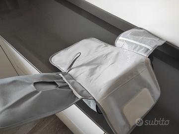 Comodissima borsa per passeggino, piccola e pratica, con fasciatoio incorporato ma staccabile, porta salviette e tasca interna con cerniera. Con tracolla per poterla usare come semplice borsa. usata pochi mesi. Al momento per me troppo piccola.