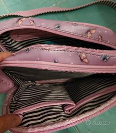 Molto capiente, doppio scomparto chiusura a zip sia esterno sia per le tasche interne. Larghezza 24 cm x profondità 8 cm x altezza 18 cm